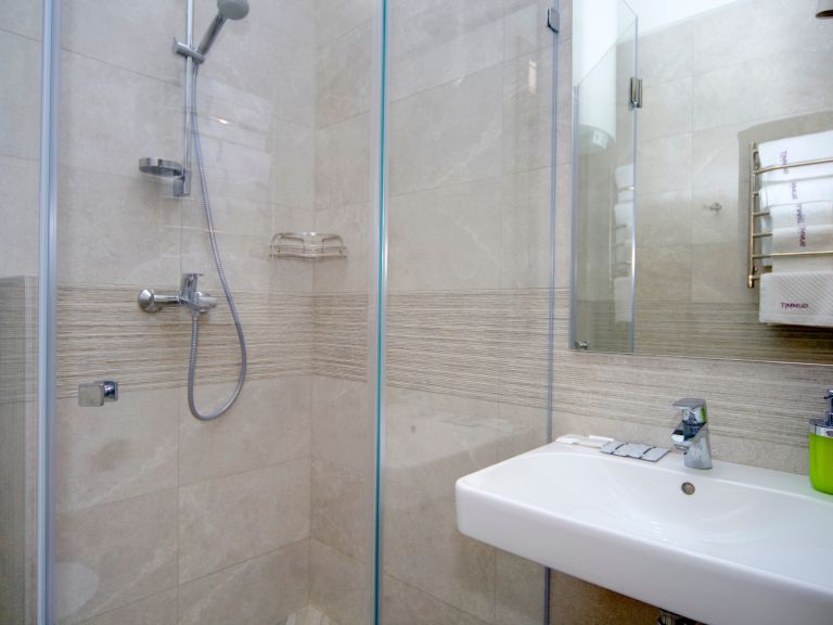 Сучасна ванна кімната: душова кабіна, фен.