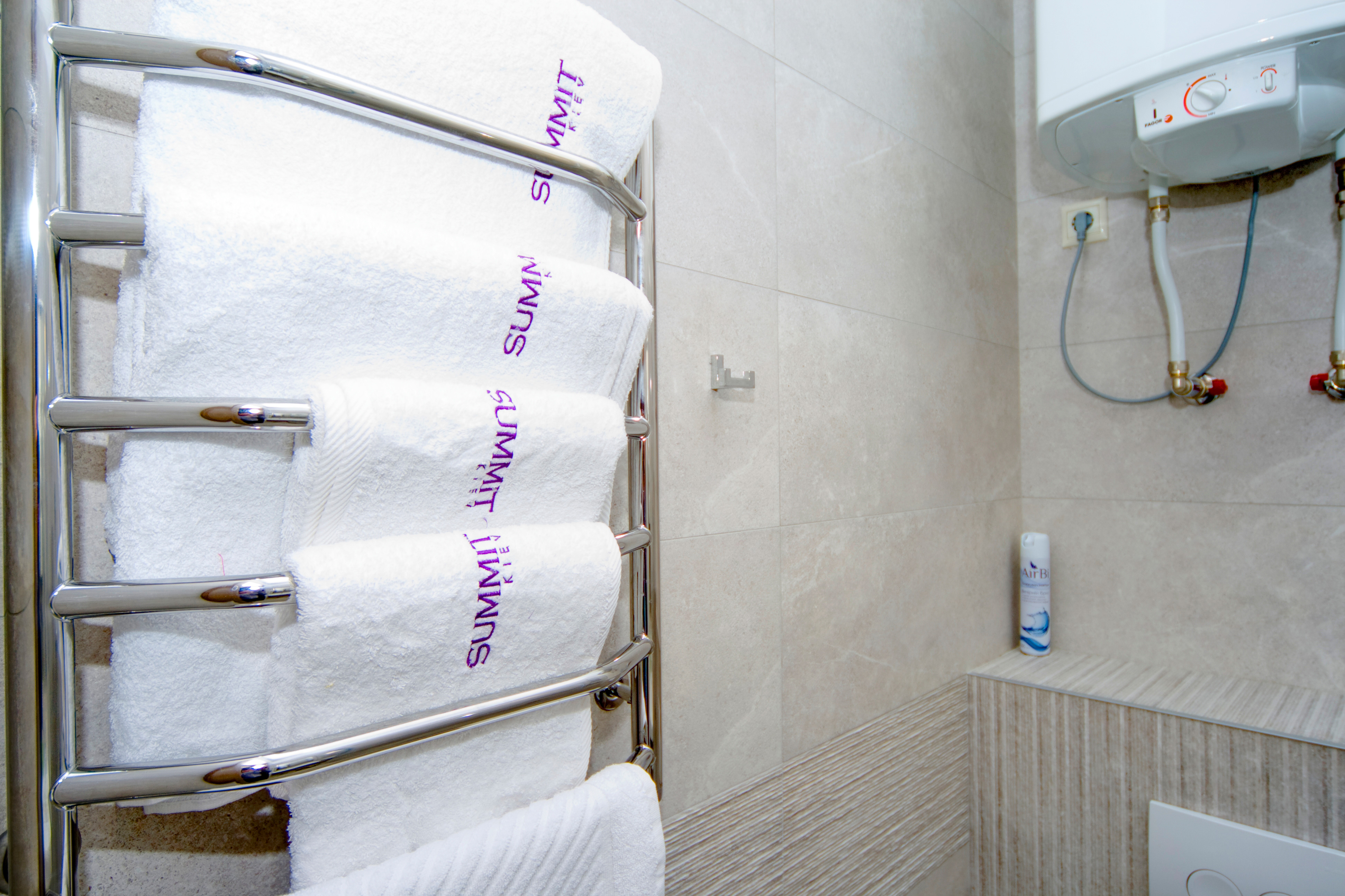 Чисті білосніжні рушники, капці, набір ванних речей,
